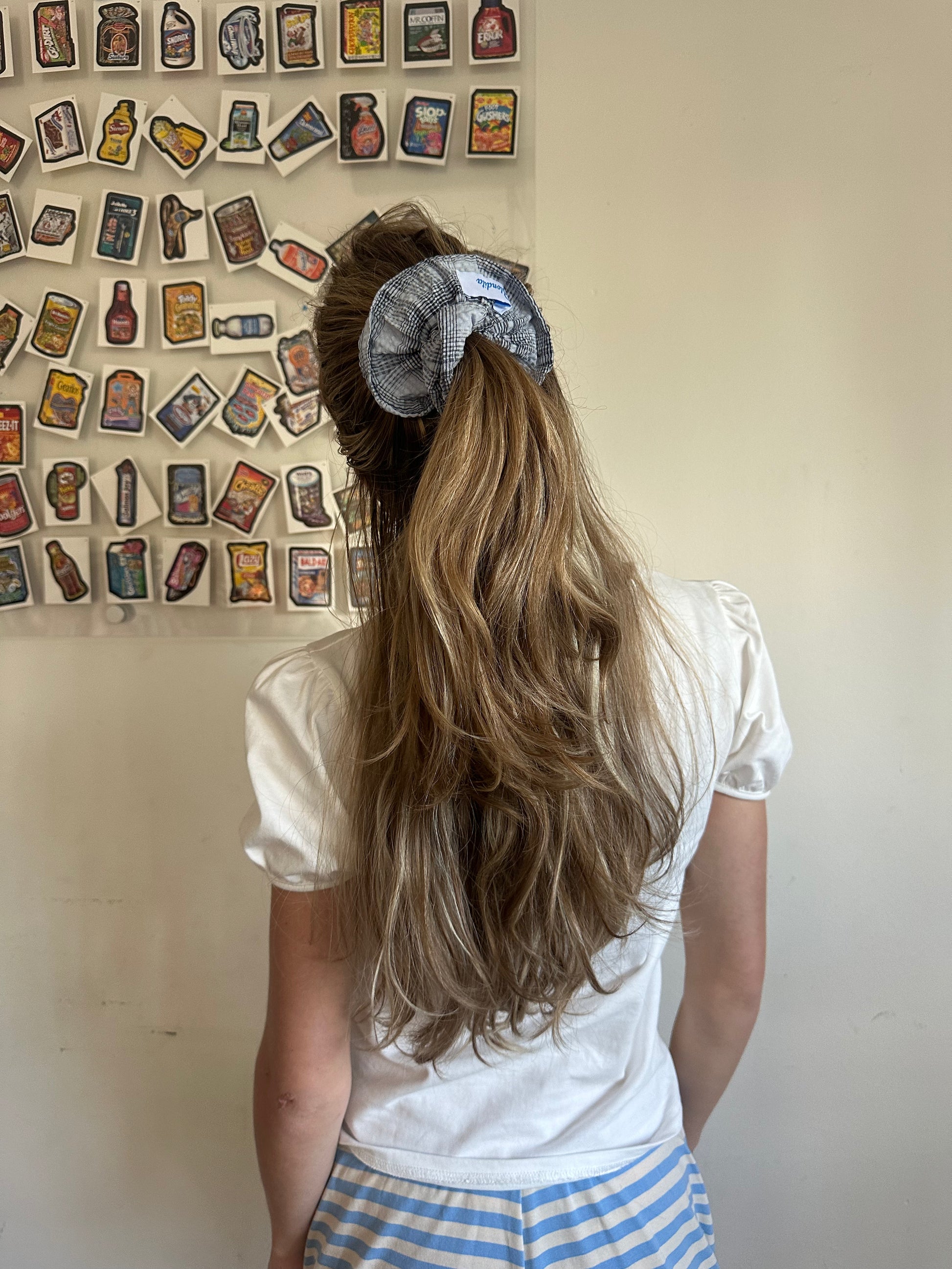 The Katie Scrunchie is a 6 x 6 in oversized scrunchie made from the same playful fabric as our Katie Set. Wear it with the full fit for a head-to-toe moment, or style it solo for a pop of Blondita charm in your hair or on your wrist.