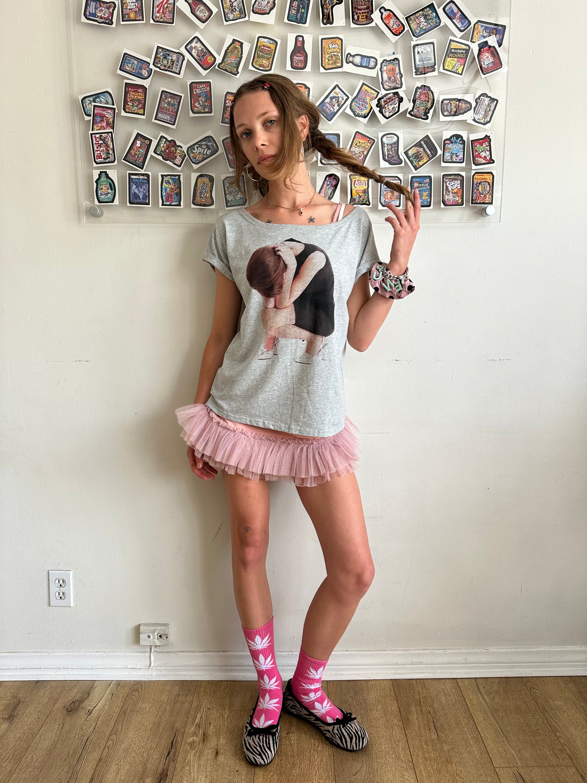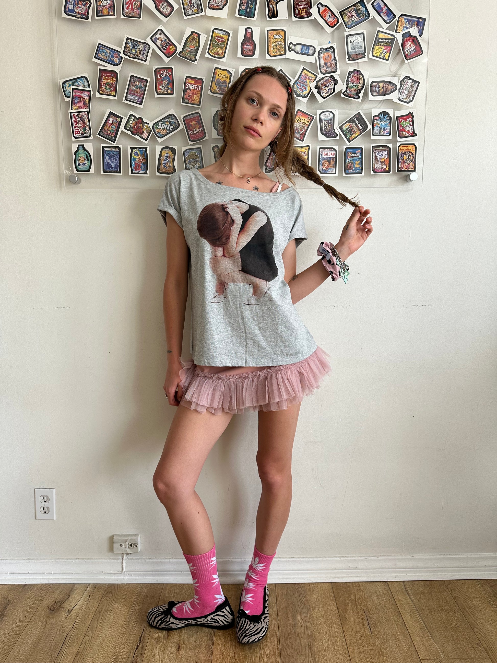 This slouchy off-shoulder tee is made from 100% cotton with a soft, relaxed fit that pairs perfectly with everything (seen here styled over our Sophia Tutu Dress).