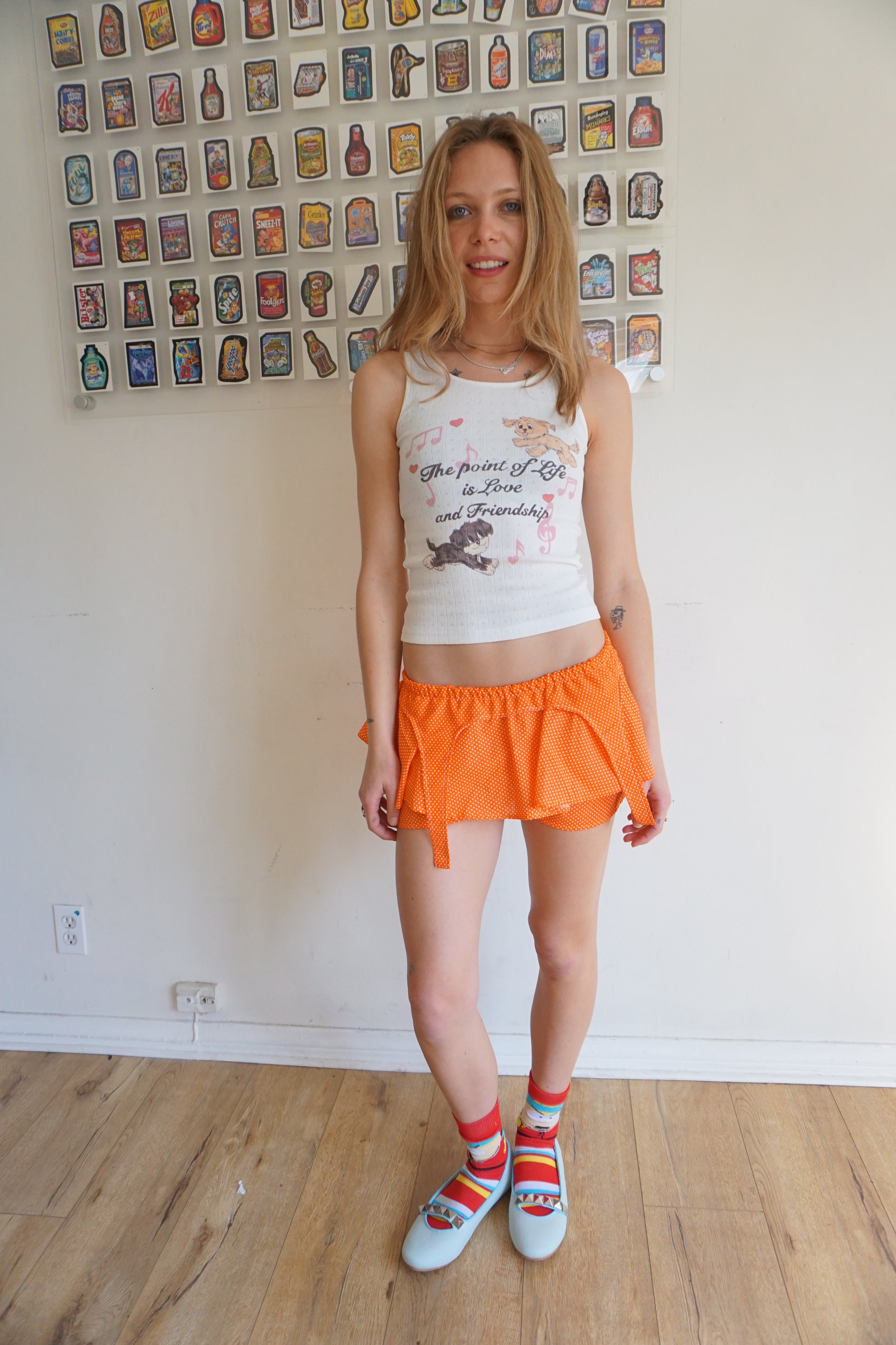 Bright orange with tiny white polka dots, this skort gives retro summer energy with a modern, wearable fit. Comfortable, lightweight, and made to turn heads — while still being easy to throw on and go.
