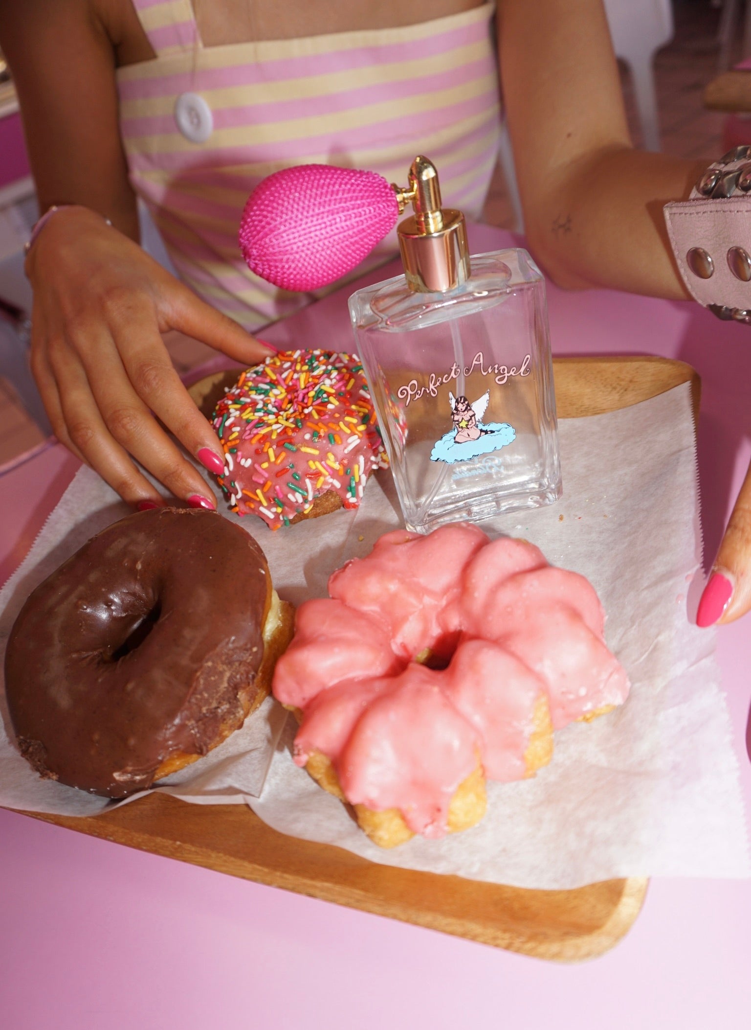 Our premiere fragrance with Musidora <3 a soft, candy-sweet fragrance that feels like stepping into the sweetest version of yourself 🪽 juicy blood orange and raspberry melt into ripe strawberry and delicate orange blossom, settling into a warm base of vanilla bean, whipped cream, and soft musk.
